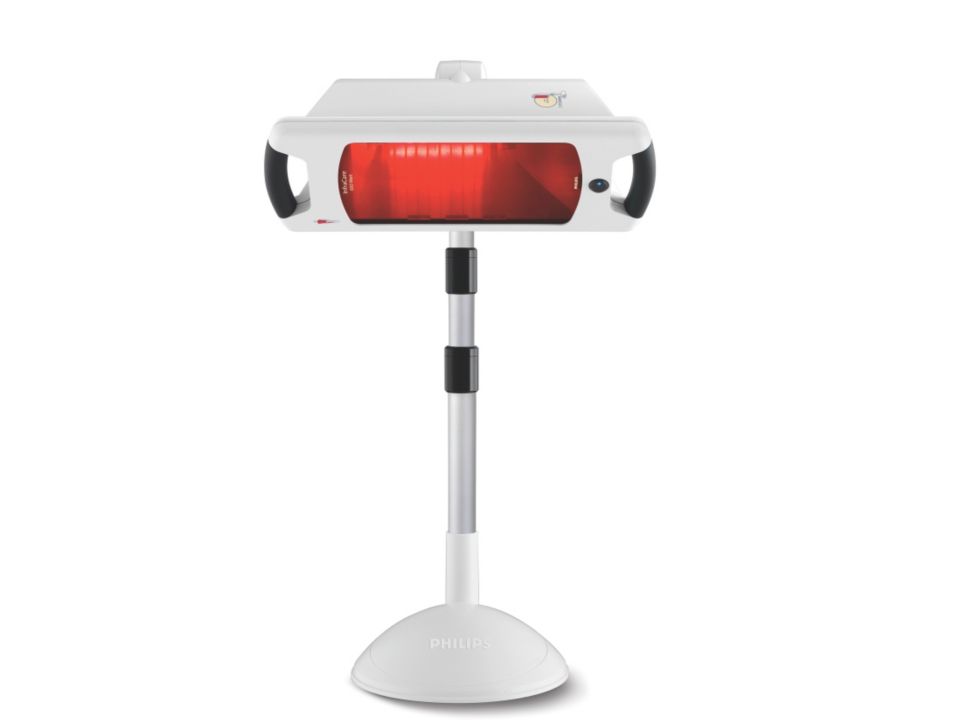 In beiden Positionen lässt sich zudem der Neigungswinkel individuell einstellen. De speciale lenzen, het speciale filter en de krachtige halogeenlamp van 6watt zijn geoptimaliseerd voor de behandeling van het halve lichaam (x cm), waarbij de infraroodwarmte gelijkmatig over het te behandelen gebied wordt verspreid.